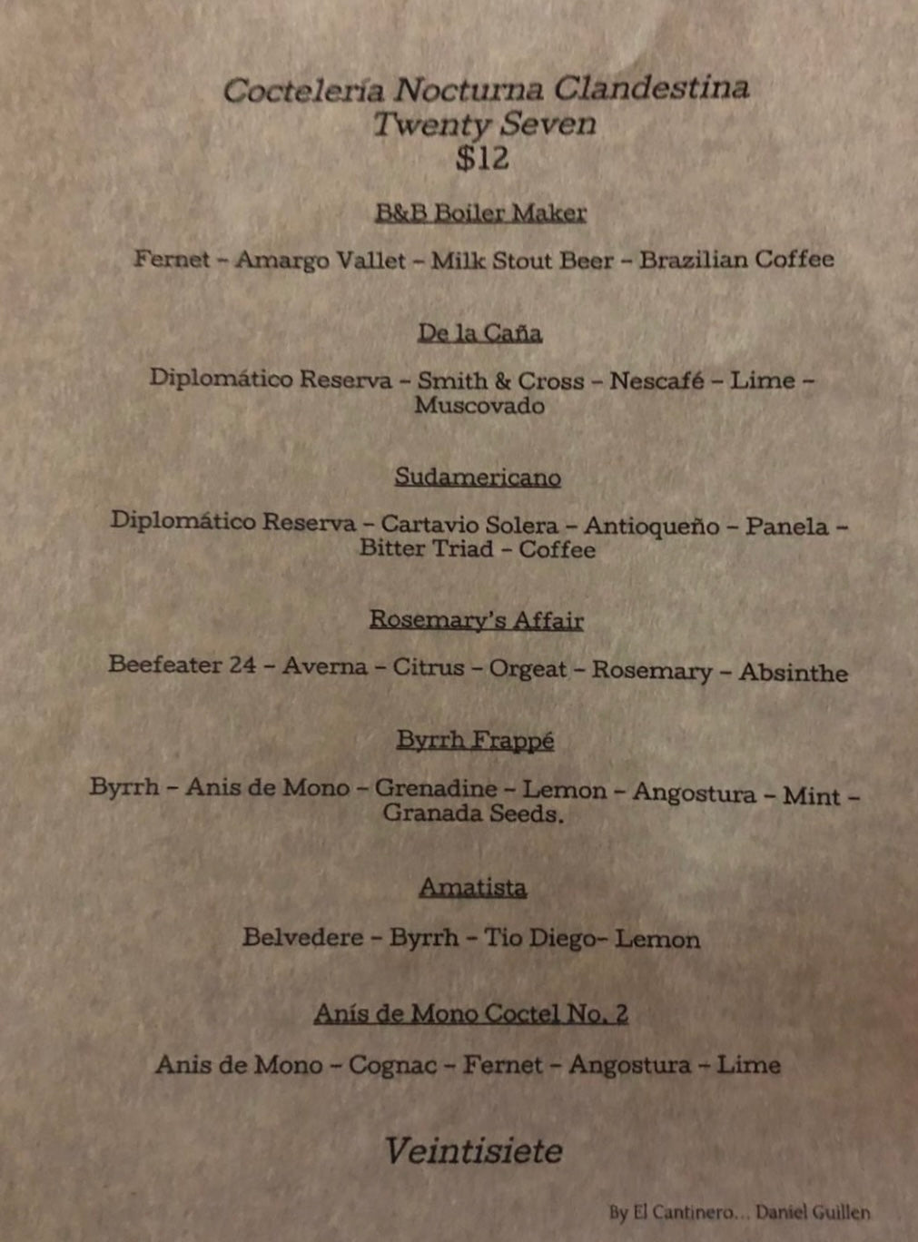 restaurant by 25. I have gotten people drunk at the bar, and gotten myself drunk while seating at one as well. I have won a couple of Local and National Cocktail Competitions while tending the bar, co-owned a bar, worked for major Liquor companies like Johnny Walker and La Caravedo as an ambassador, but the most satisfying reward I got was to create El Cantinero with my brother Armando in 2015.