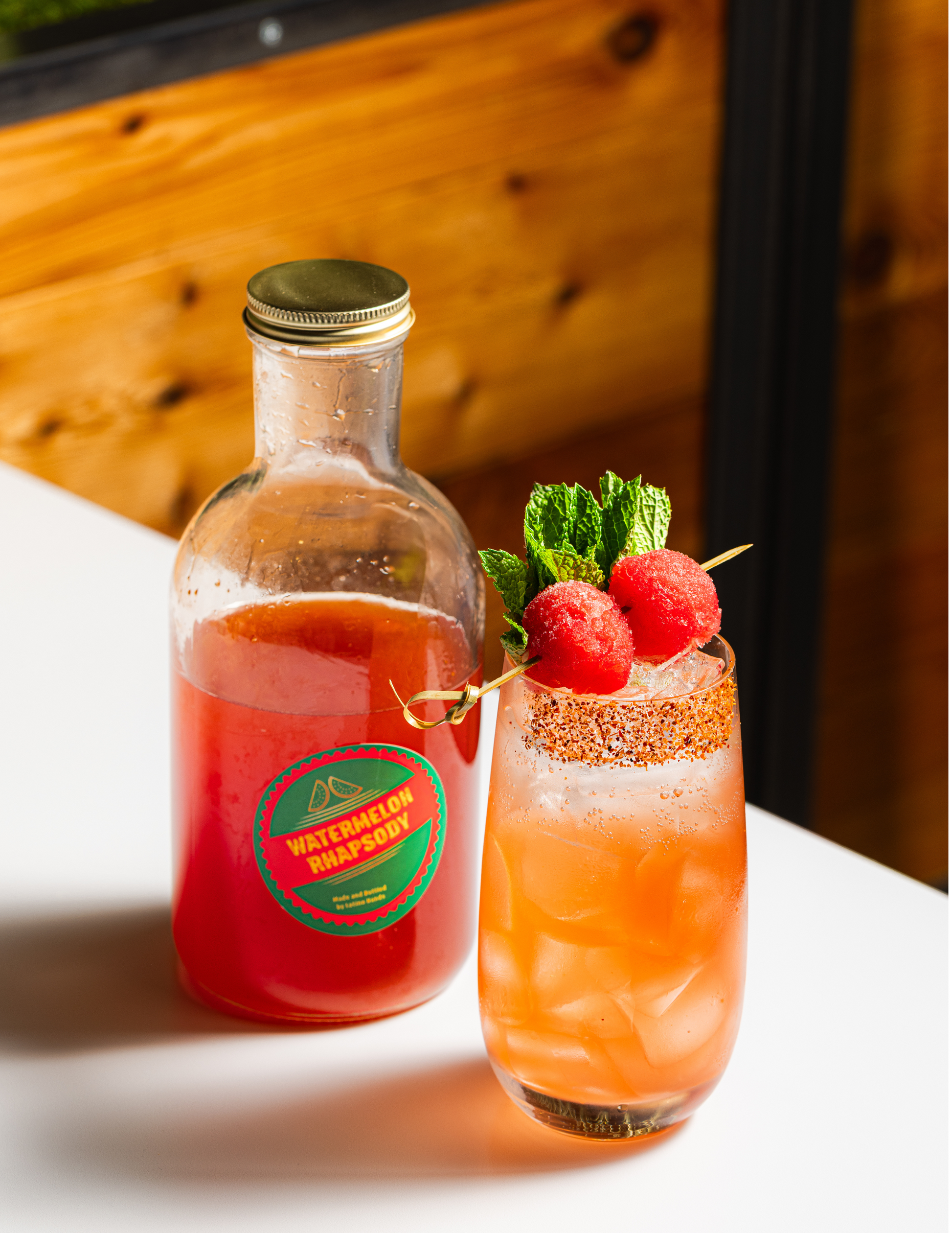 From quenching breezes and local crops, we crafted a watermelon elixir that embodies a harmony of fresh citrus and vibrant fruits. A blend of fresh watermelon and cucumber juices, nuances of ginger and lemongrass and hints of hibiscus and limes, It is certainly a Rhapsody of flavors that will take you to your next summer getaway.